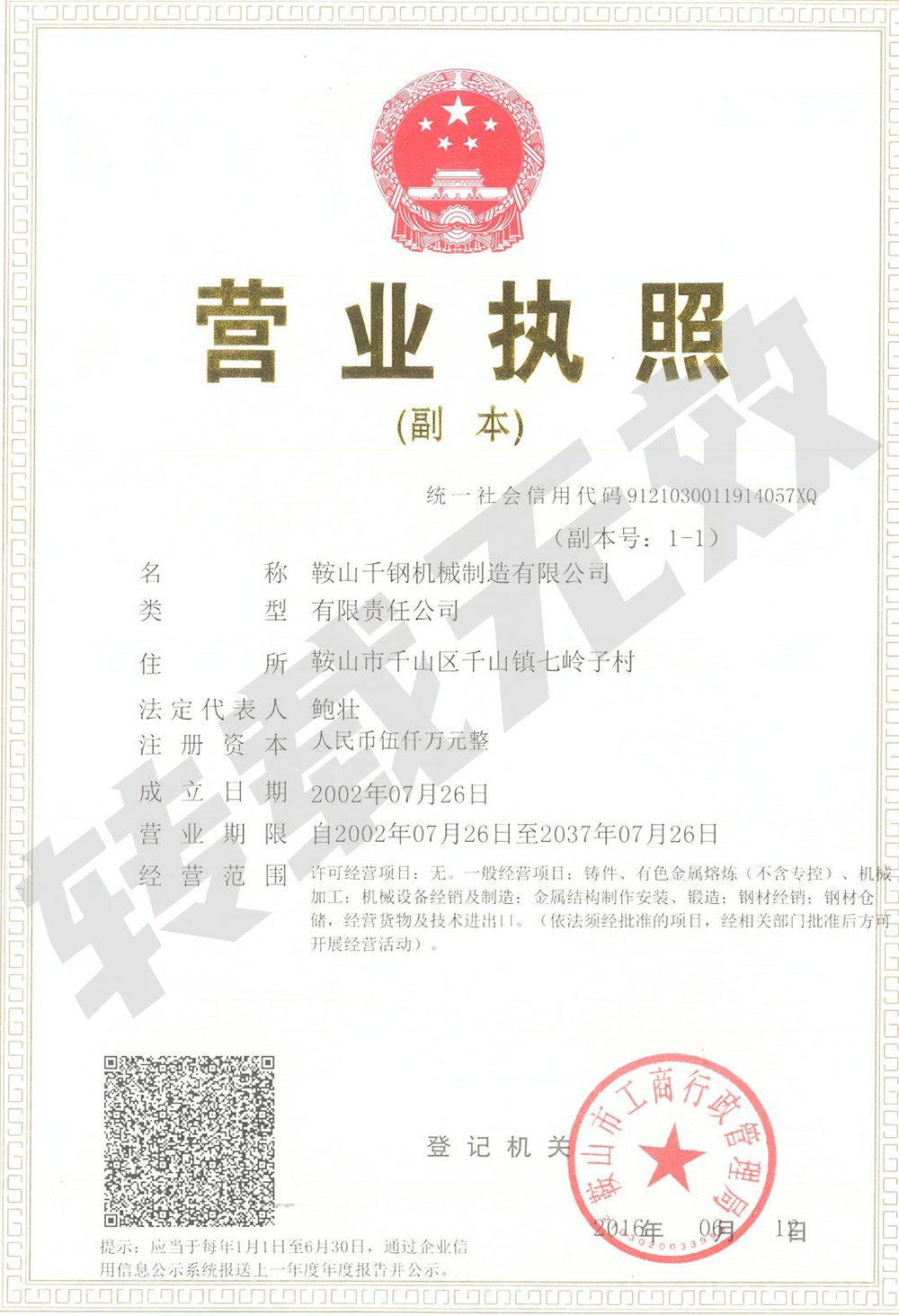 Copyright © © 2020  鞍山千鋼機械制造有限公司 Inc All Right Reserved.   技術支持:鞍山龍采    遼ICP備18009733號   營業執照