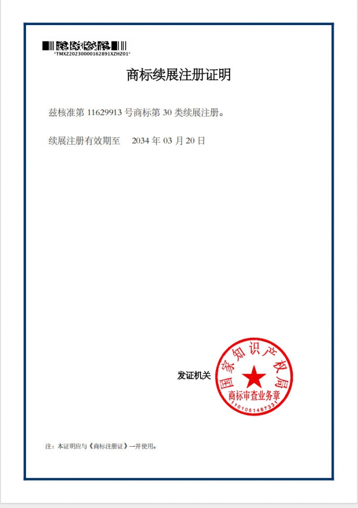 商標(biāo)續(xù)展注冊證明